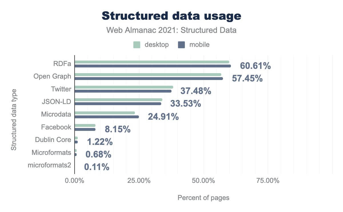 一方、Microformatsやmicroformats2などのレガシーフォーマットは、ページの1%未満にしか表示されません。