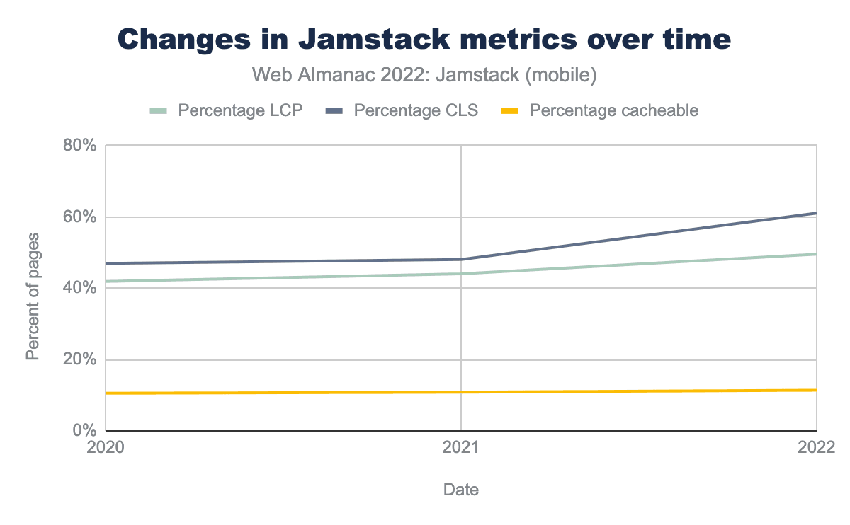 これらすべての注意事項にもかかわらず今年の「Jamstack的」サイトの見積もりは、厳密にSSGに焦点を当てた定義を改善しており、結局のところAlmanacの目標である、今日のWebが実際にどこにあるのかについてのより良い感覚を与えます。